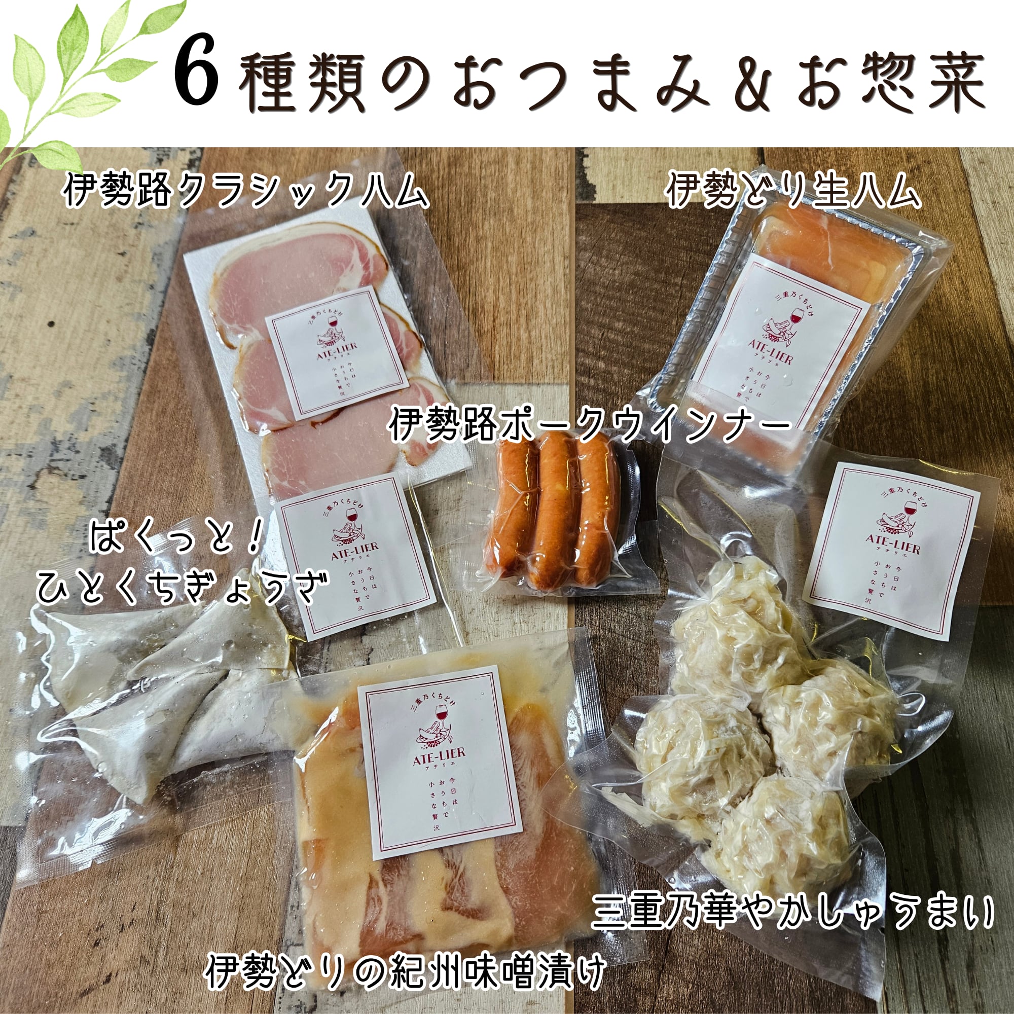 三重県の素材を使った”お酒に合うアテ”を6種類詰め合わせました。